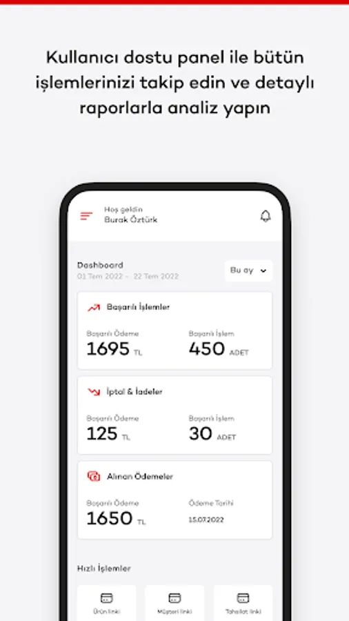 Carry your business in your pocket with AKÖde POS Mobile! Track all your transactions from within the application, create a payment link, and make cancellation and refund requests! You can even view your workplace information and working conditions from the application and easily track your limit information!