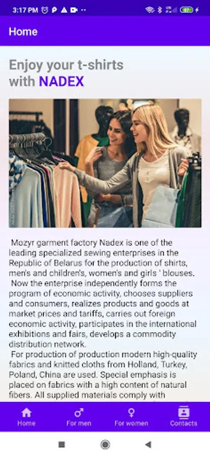 Catalog of products of JSC «Mozyr garment factory «Nadex» with a detailed description of the goods.
