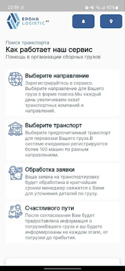 Delivery of goods in any direction. Groupage cargo organization online. Find a carrier or become a carrier with Epoha Logistic. Track cargo and manage transport online.