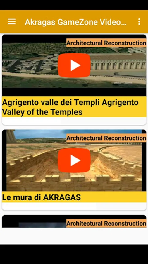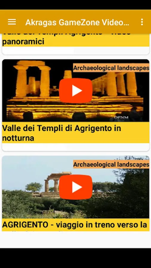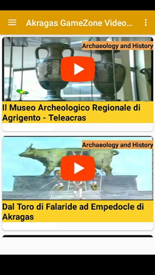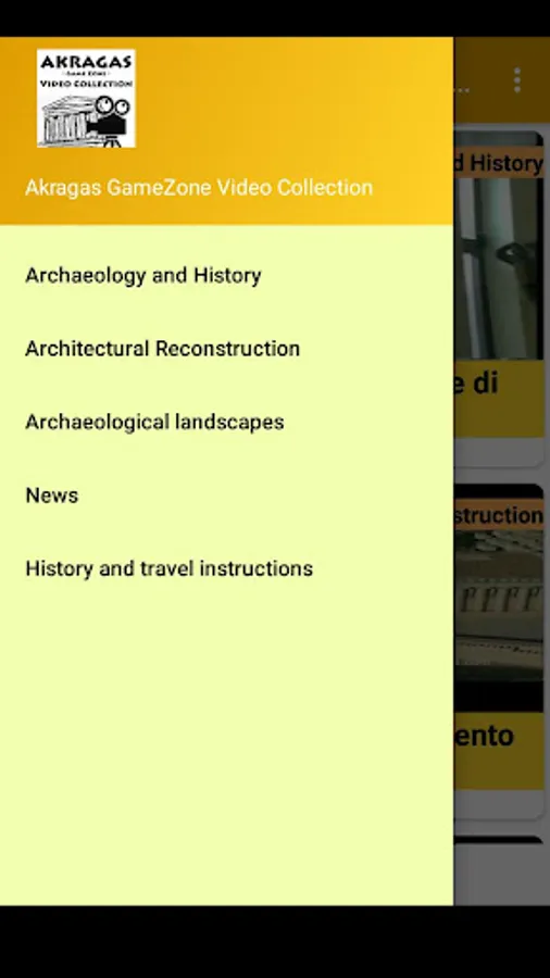 "Akragas GameZone Video Collection" is a library of videos about the ancient city of Akragas (Agrigento). Videos are categorized by type (Archaeology and History, Architectural reconstruction; Archaeological landscapes, Agrigento and its territory, News and Travel instructions)
