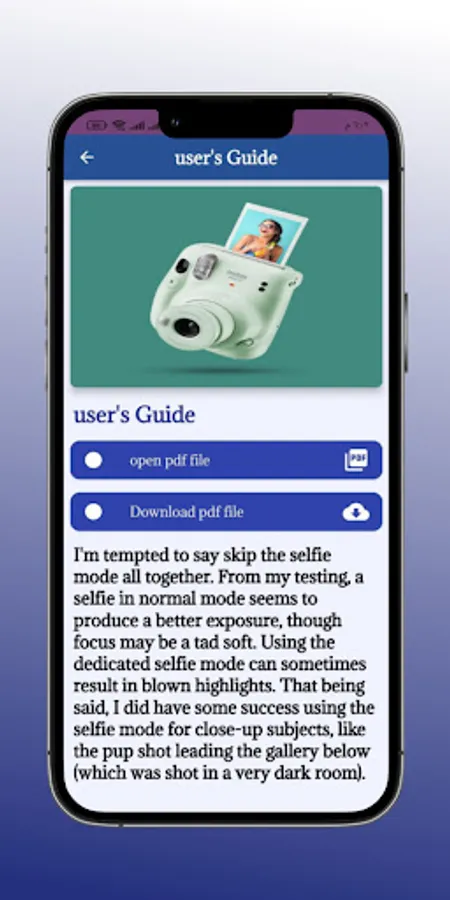 Please note that this is not an official app. It is an educational app that aims to help users better understand the Fujifilm instax mini 11 guide. The information provided is from various reliable sources.
