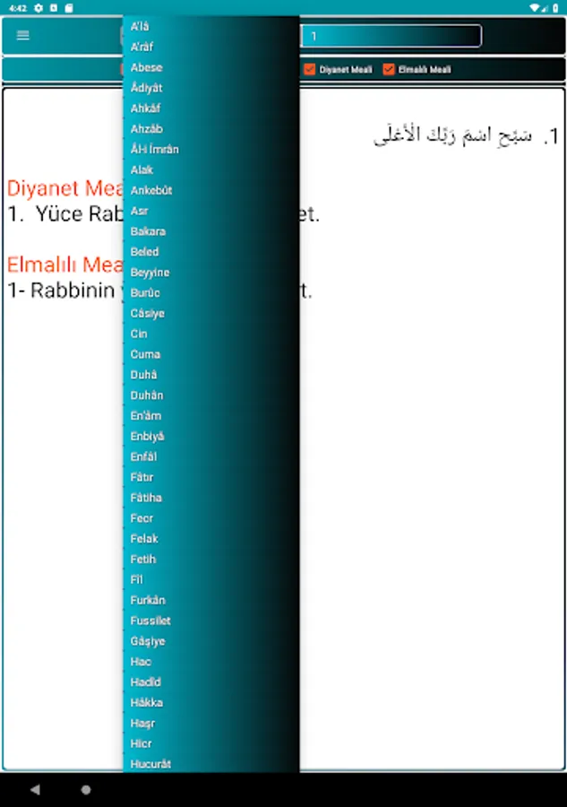 An application that you can dial up to three words at the same time or in the Quran translations in Arabic.