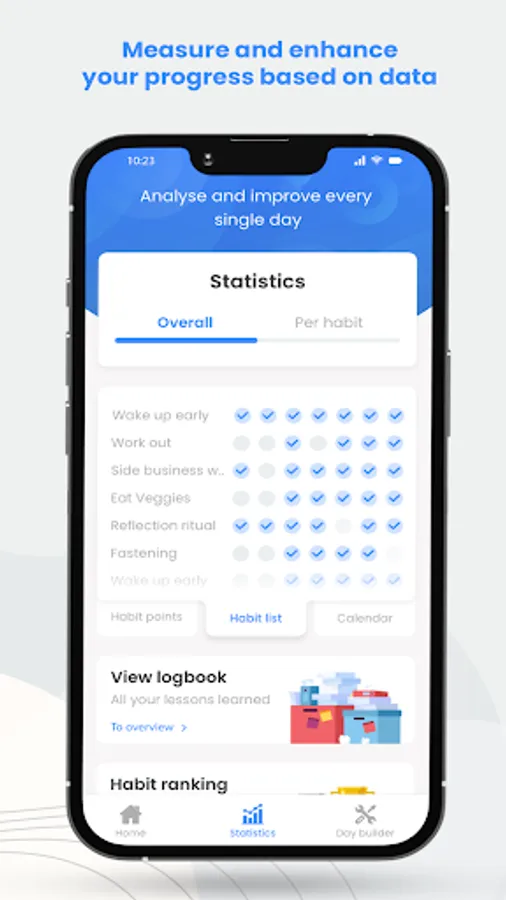 Hoplit Habits helps you to build and maintain the daily routine you’ve always wanted, helping you to reach your goals. Learning new habits or getting rid of existing bad ones. This habit tracker has detailed statistics to help you track your overall progression and enhance your progression based on data.