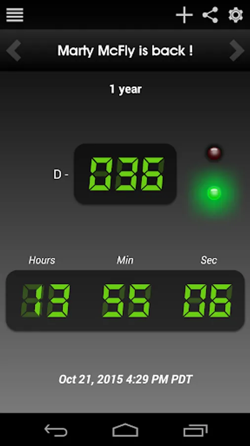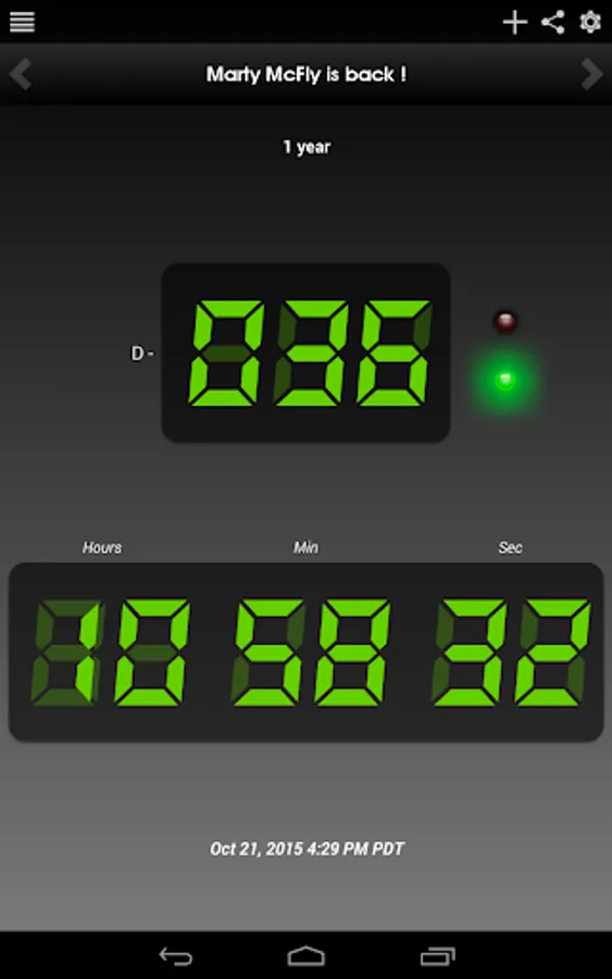 Final Countdown is a timer with various countdown functions. It can be used as a countdown, as an alarm clock, to program the date, time and hour of any upcoming event: birthday, year end, due date, vacations, or even end of the world…