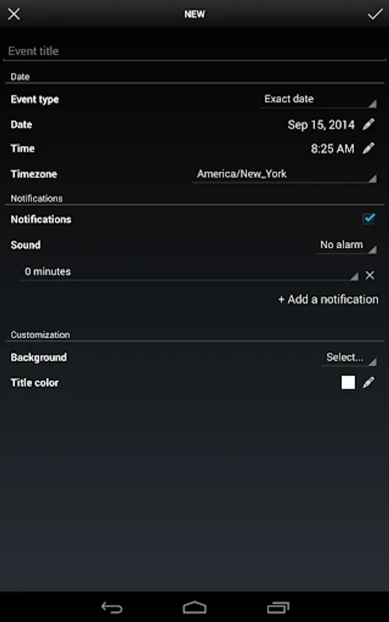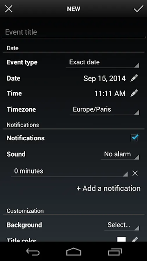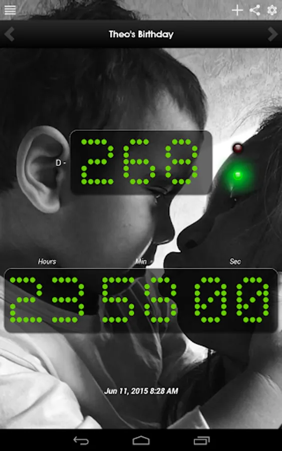 - Unlimited number of simultaneous countdowns (color title, date, hour, minute and second)