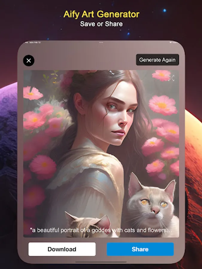 Make images from words or Create portraits art with AI , then share social media your art creations. Download now!