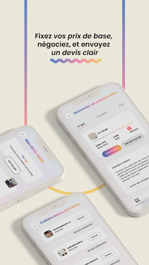 Set your base prices, negotiate, send a clear quote: Automatic creation of quotes, invoices and tax declaration assistance.