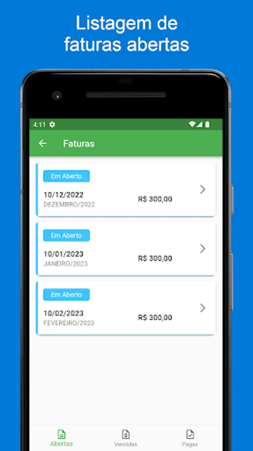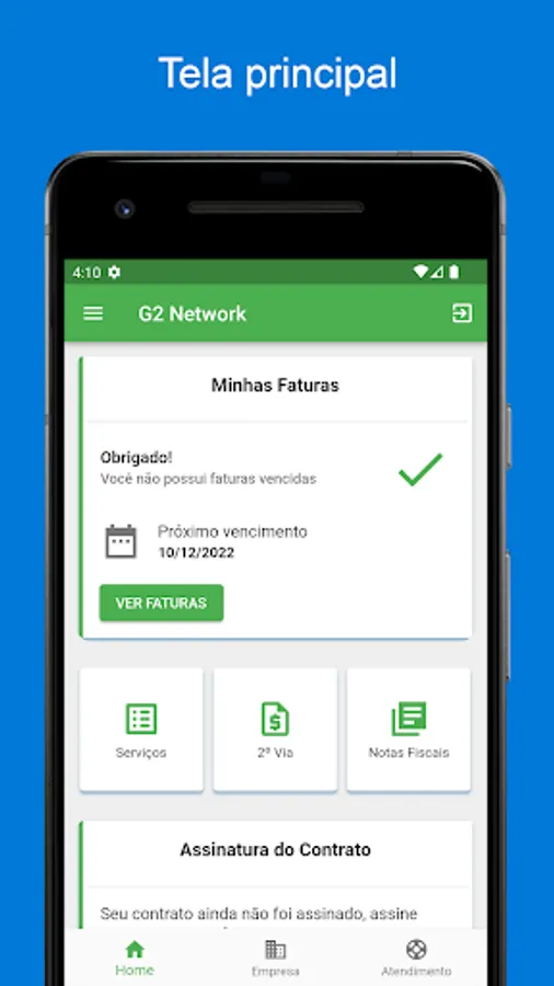 Access your invoices, invoices and plans, copy the barcode, download or share the boleto, release by trust and contact support, all this and more via the app!