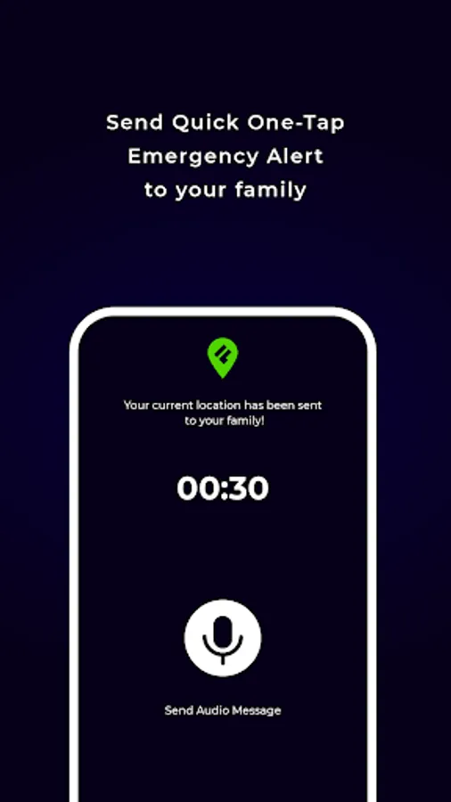2. Emergency - A quick one tap button that sends an alert to your family members in a second with your current location. You can also send a short audio message.