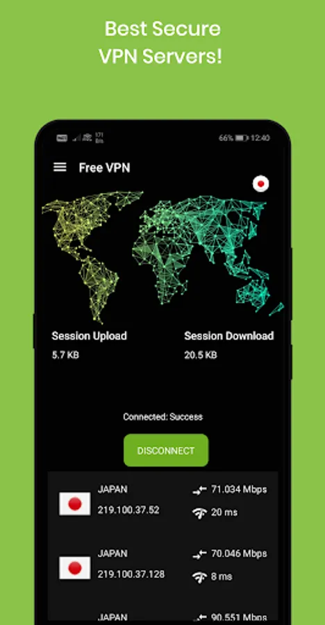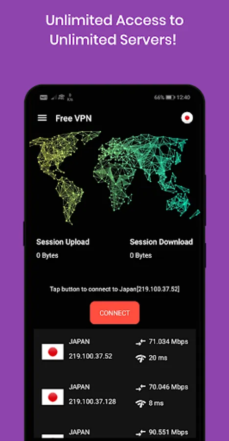 Choose from any VPN servers and stay connected aninymous until you prefer. No time caping and glitches.
