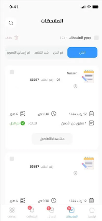 An application for a reverse company, where it allows the management to follow up on notes, problems and inquiries from the various parties of the company, until work is done to solve them or respond to them