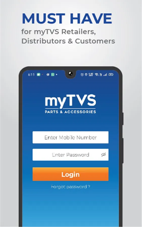 One-stop platform for myTVS Retailers, Distributors or Individuals/ End-user Customers. It’s a fully-loaded app from the house of myTVS - India's most-reliable brand of auto parts & accessories. myTVS has been awarded twice as India’s Best Car Accessories Brand by Times Now, ET and MODI Awards.