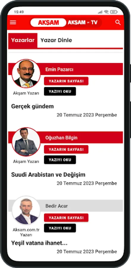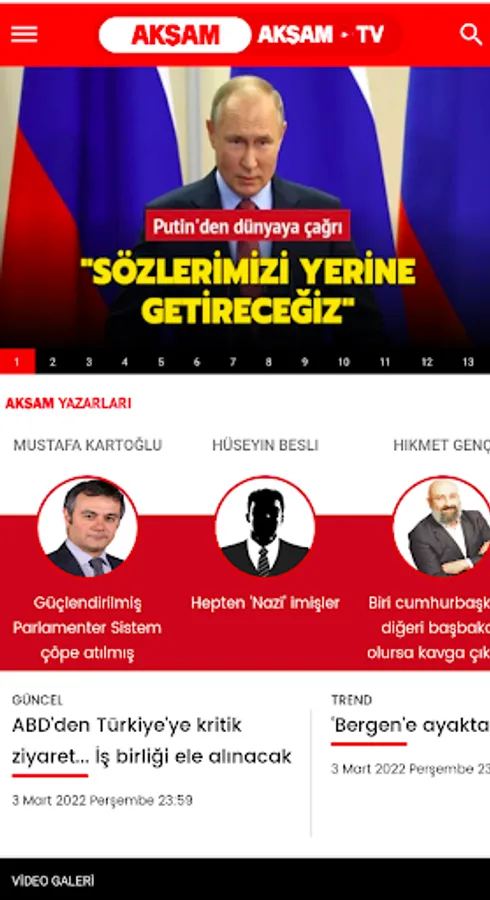 Evening Gazette rich content of the website thanks to a new application of Turkey's fastest and most accurate news site now on your Android device. You can instantly access news from all categories such as economy, politics, world, sports, magazine, technology, life, which are updated at any moment, see last-minute headlines, watch the most up-to-date videos, easily access columns of all the authors of Akşam newspaper and share them on social media. In short, all content of Aksam.com.tr is now at your fingertips.