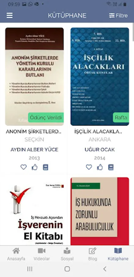 Library: You will be able to benefit from the library of Aksan Law Office for more than 1000 works. By searching the book lists online, you will be able to open a request for the book you want to borrow.