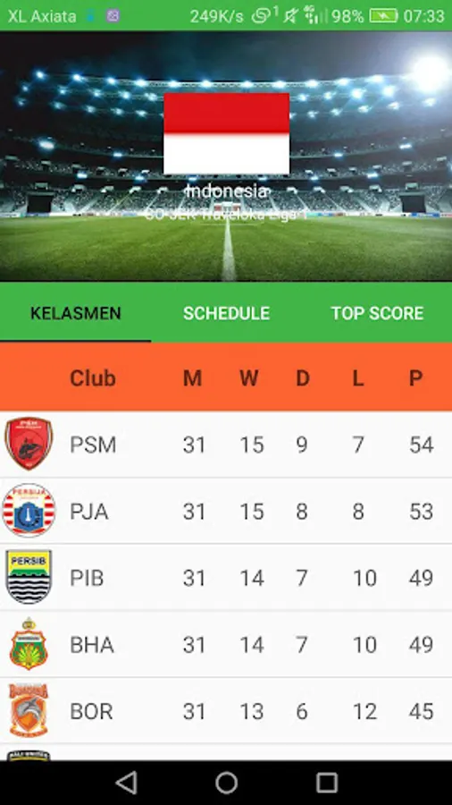 Classmen application, is an application that provides information about temporary league classes from all countries in the world, there are also match schedule information and Top Score information.