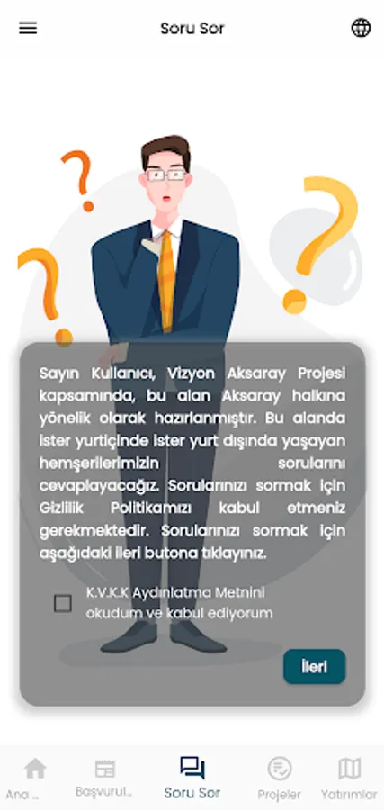 The application where Aksaray Governorship Vision Projects are introduced and you can also ask questions to our institutions.