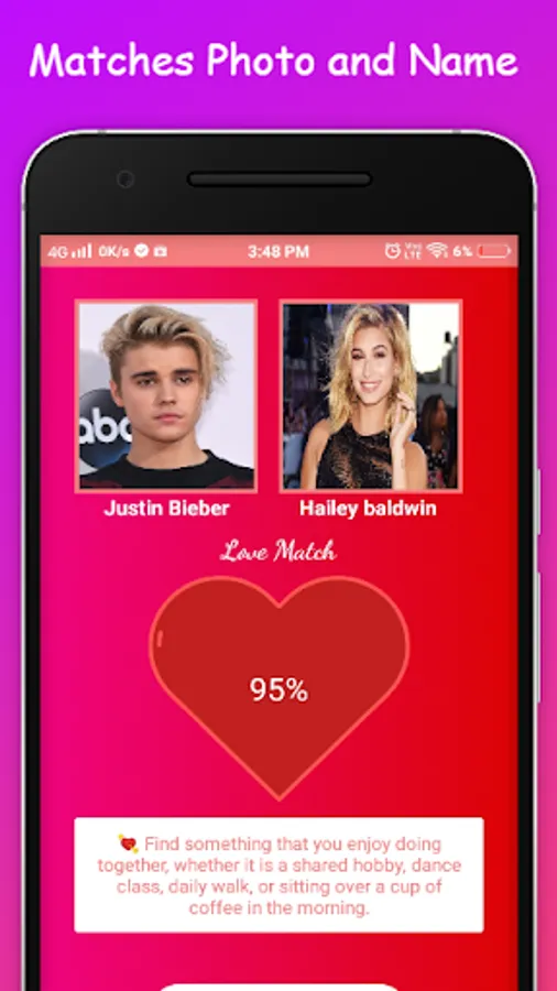 Then a must use is Love Test app ЁЯТХ for calculating love compatibility based on an advanced computational algorithm.