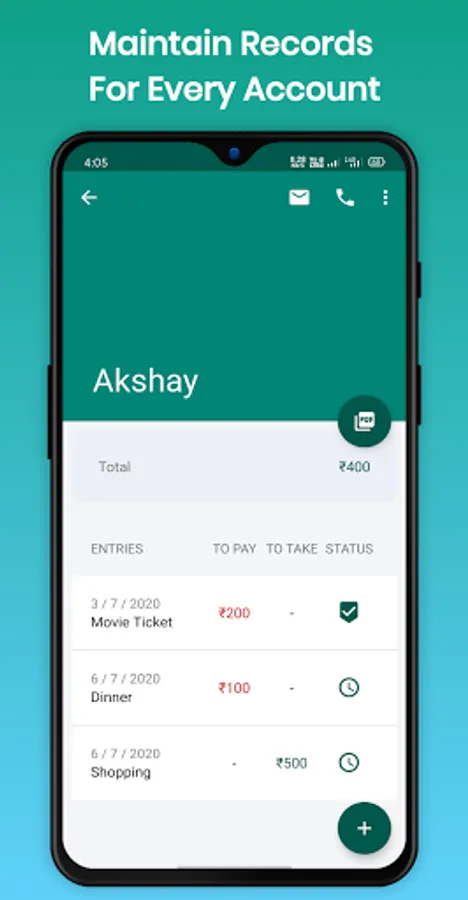 A very useful app for Hostelites and PG students who lend/take their money to/from different people and then forget how much money to take/give from/to different people.