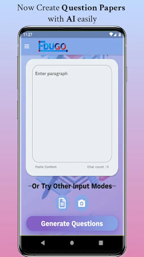 EduGo is a free, sustainable platform where users can generate question papers according to the user’s requirements.