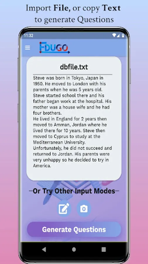 The app can take input in various forms like PDFs, images, plain text, .txt file.