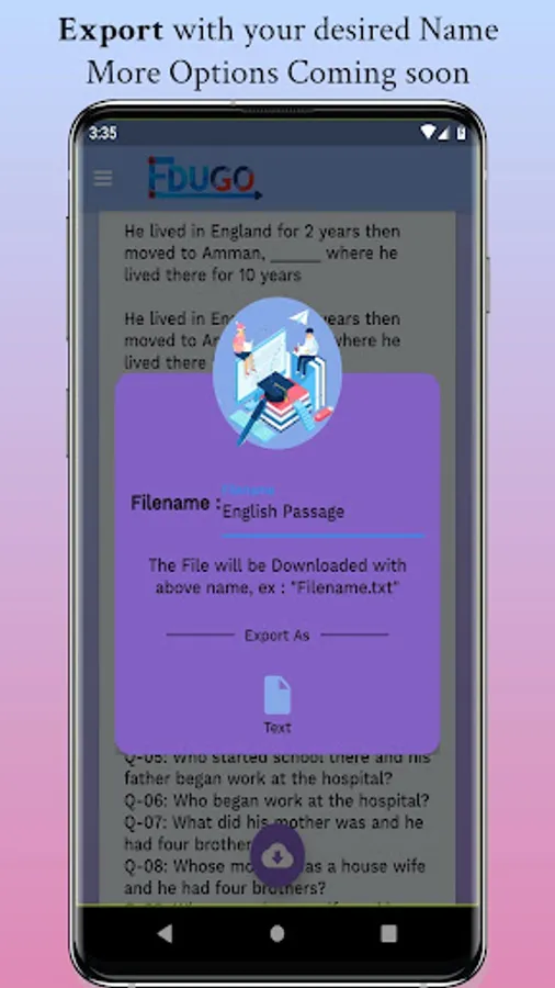 We are also generating a teacher's side app where the teacher can share question papers with there class, with the student having our student-side app the whole examination process can be automated.