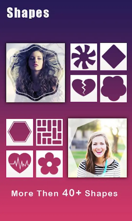 The Insta shape app has over 40 kinds of shapes like rectangle, triangle, circle, heart and many more.