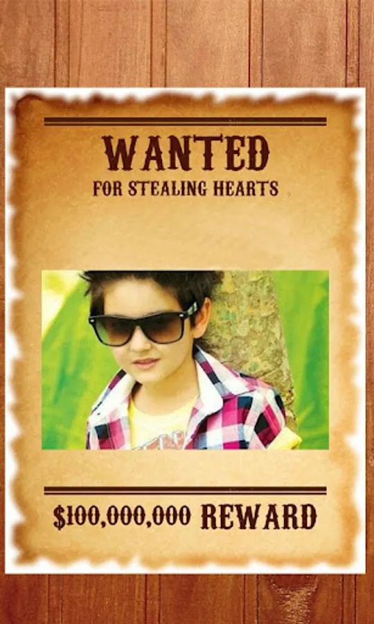 Most Wanted Poster Maker let you create a wanted poster of your friend. All you need to do is select a picture from mobile gallery or capture it with mobile camera then apply most wanted poster on it. This is funny prank app to make people laugh. Please do not use it in wrong way. Most wanted poster maker have variety of wanted poster with different caption. Save your poster and share this most wanted poster with your friends on social network like Facebook, whatsapp, instagram etc.