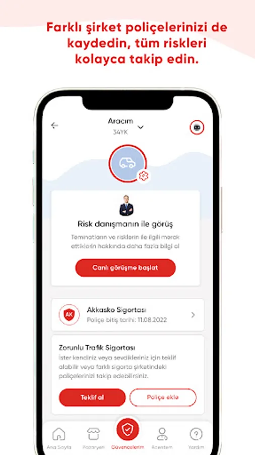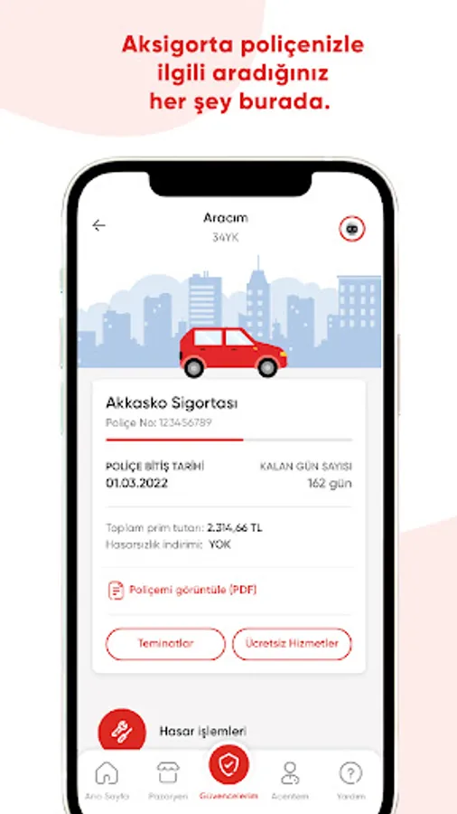All your policies together: All your policies through the Aksigorta mobile application.