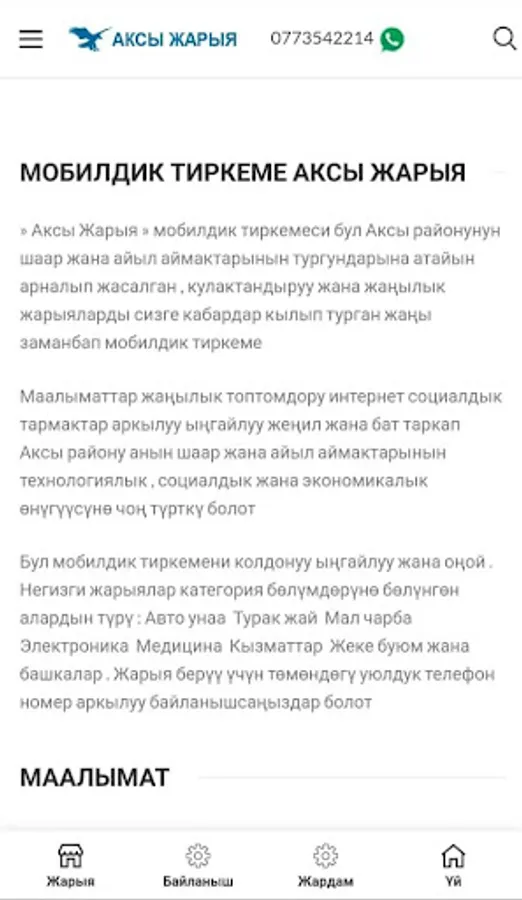 "Aksy Jarya" mobile application is a new modern mobile application, specially designed for residents of urban and rural areas of Aksy district, to inform you about announcements and news announcements.
