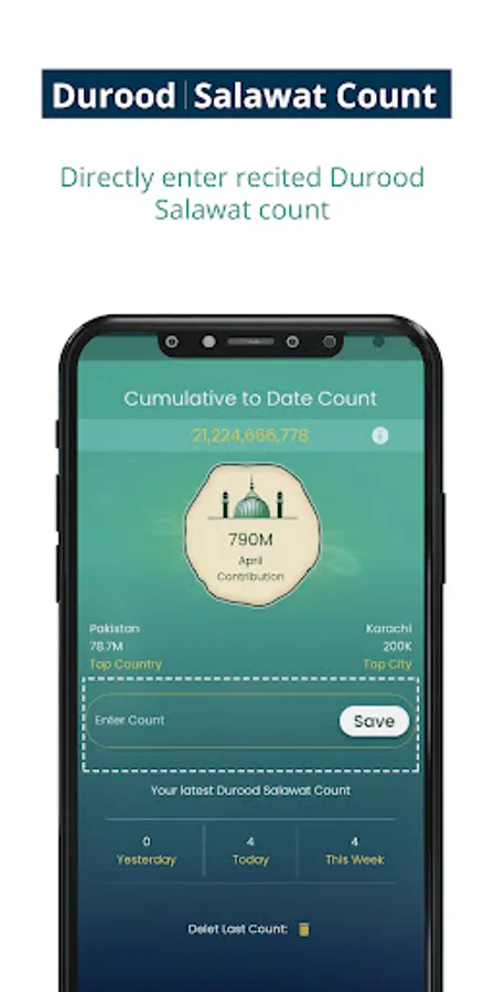 - 2. You can enter total count of recited Durood Salawat to track your progress