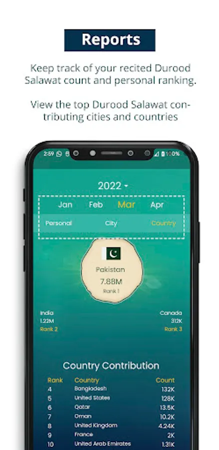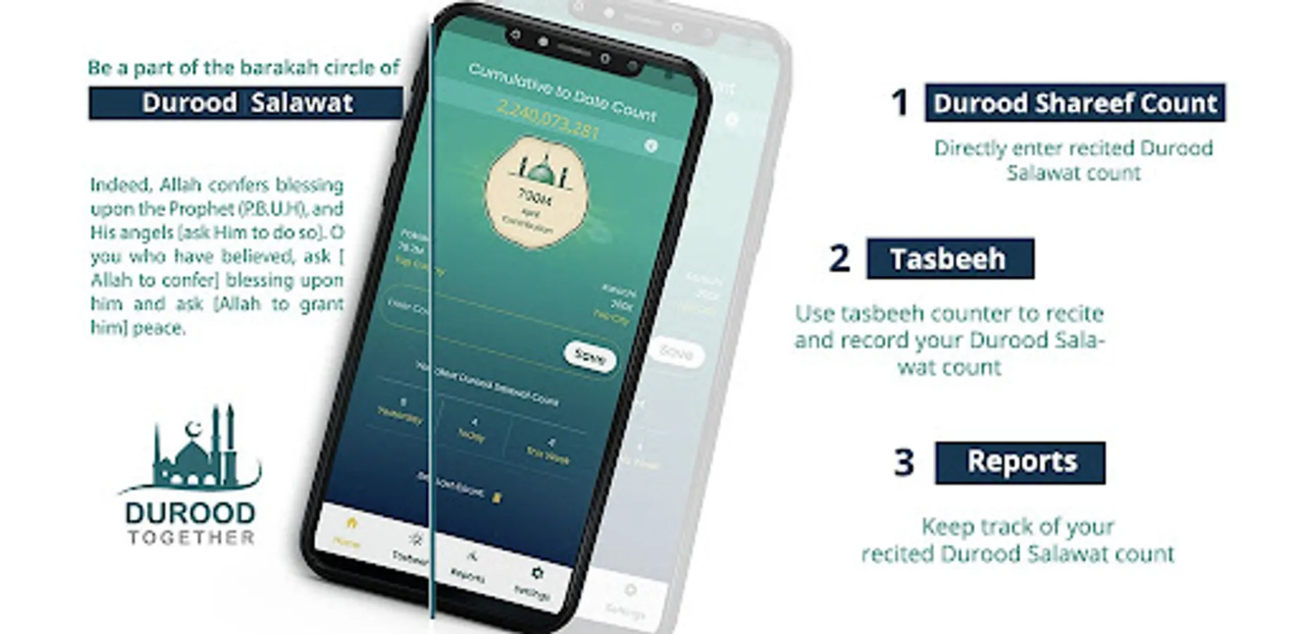 - 1. You can keep track of daily/weekly/monthly recited Durood Salawat count