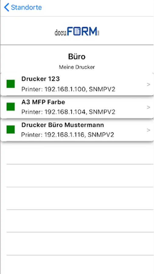 Even if only a few printers or multifunctional devices are available in your office, law firm or practice, you can now take full advantage of a Managed Print Services solution without any installation or hardware effort. All you need is a smartphone with the docuFORM MPS App in the WLAN.