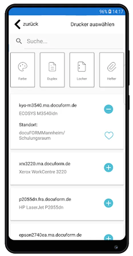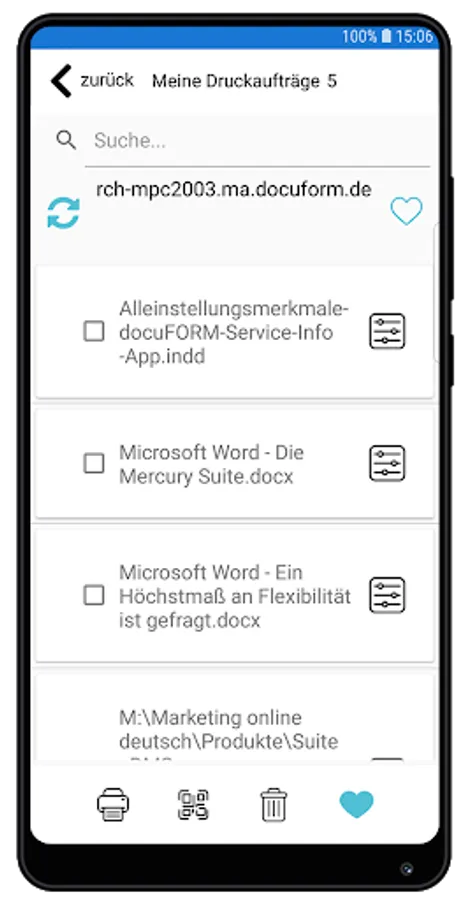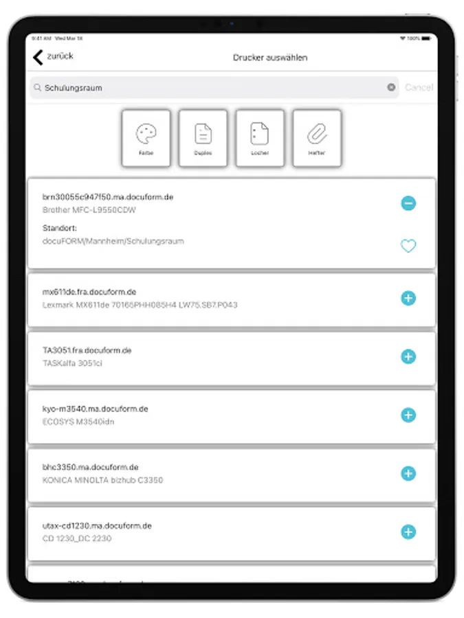 Use pull printing on all devices from all manufacturers, regardless of whether they have a display, simply by scanning the QR code with your smartphone. Find printers by model, location, or properties. Transfer print jobs to authorized employees directly from the app (Share2Print delegation printing). Worldwide & anytime.