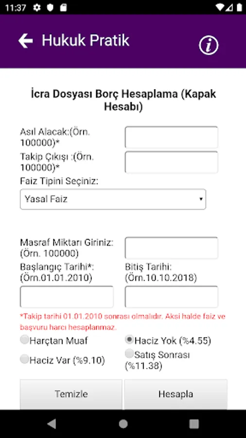 1- Legal interest, Trade Default Interest, Advance interest gradually calculated at varying rates,