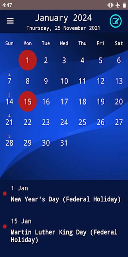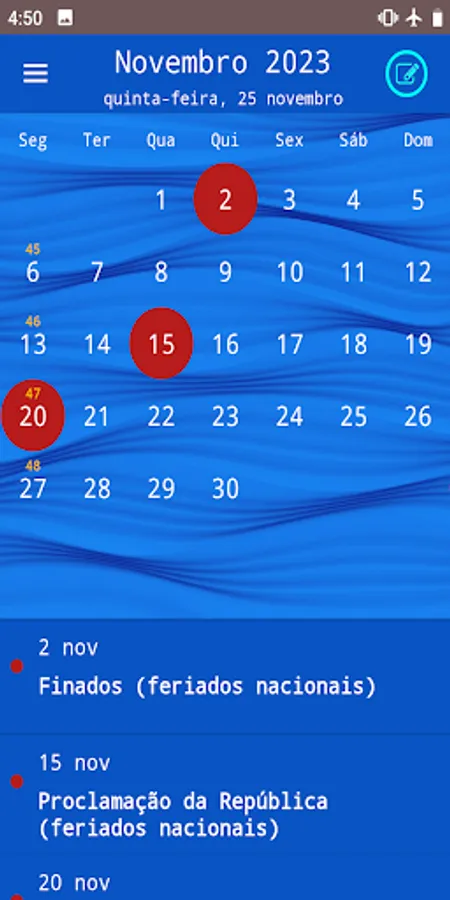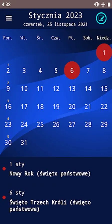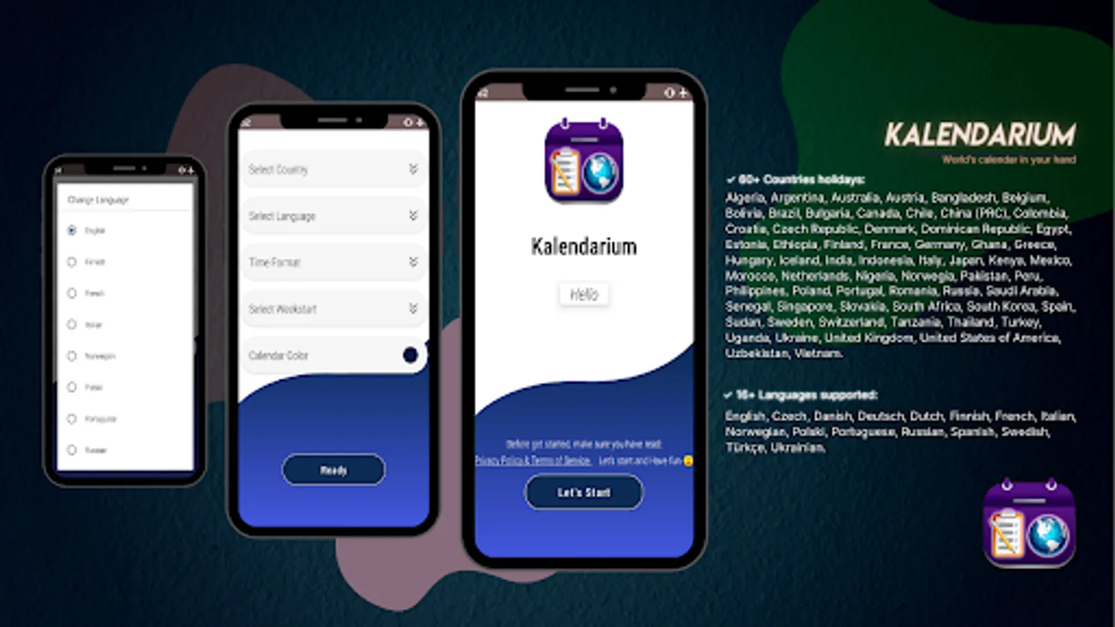 ✓ Kalendarium has 60+ countries public holidays calendar to choose:
