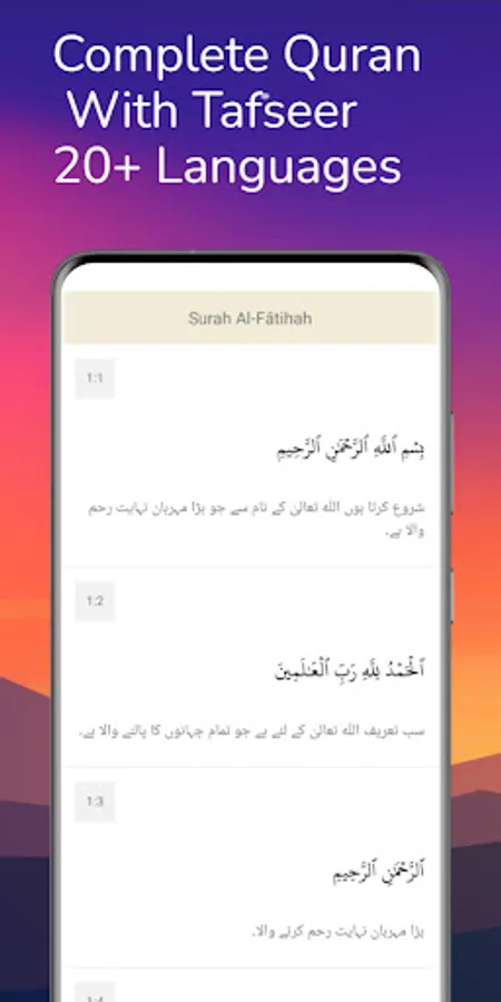 • App and Quran fully translated to: Bahasa Indonesia, Bahasa Melayu, Deutsch, English, Español, Français, Italiano, Nederlands, Português, Türkçe, العربية, اردو, русский, 简体中文, 日本語, ภาษาไทย