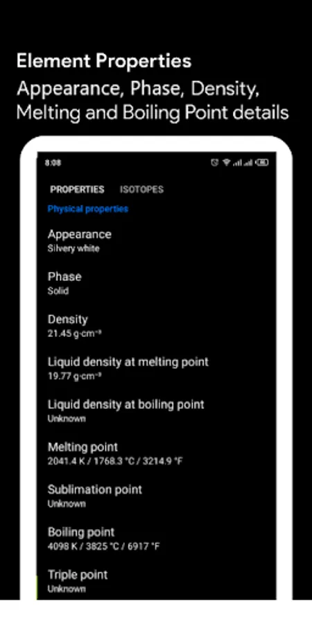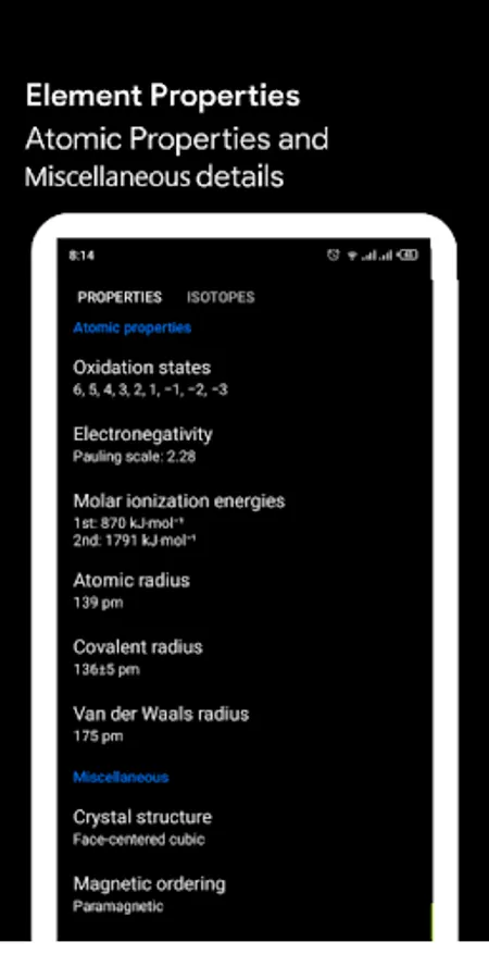Along with the Chemical Element names and symbols, This Application also contains all the real world pictures of Chemical elements and the diagram of their Electron Shell Configuration.