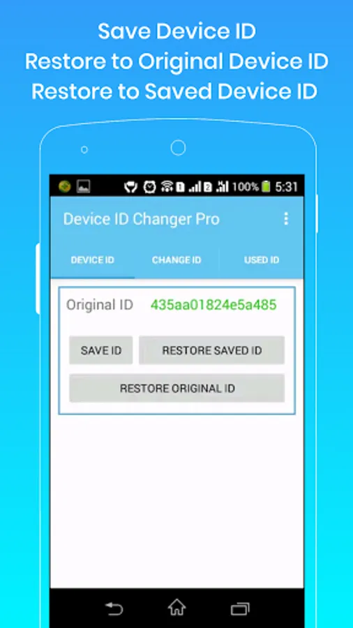 * You can restore to Device ID which saved to file using this application. clicking on restore saved ID Button will give you options to restore Id with yes and no button .