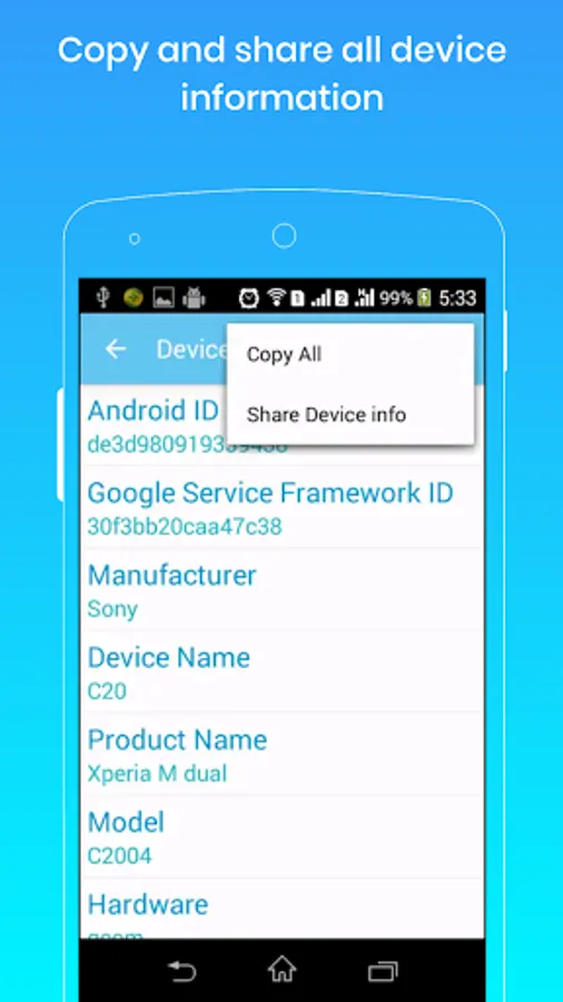 This permission is used for showing user's own device info within the app. This data is not stored anywhere with us.