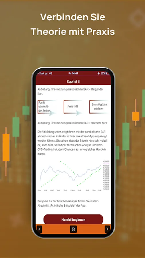 In addition, the practical examples in this app help you to combine theory with practice. In addition, you can expect six practical questions in which you can immediately apply the knowledge you have gained. This way you will quickly know whether you have understood the concepts behind Bitcoins and CFD trading. And it gets even better: you can create a free demo account and practice everything risk-free! In summary, all you have to do is master the theory, use the practical examples, and test your own knowledge, and you can scold yourself Bitcoin trader!