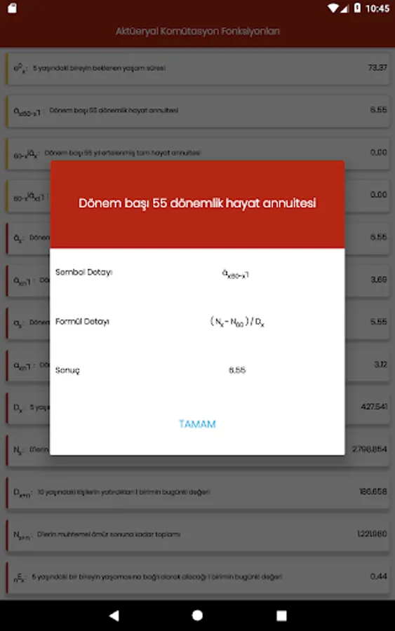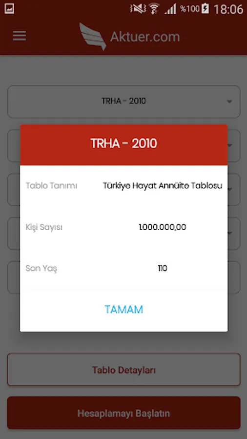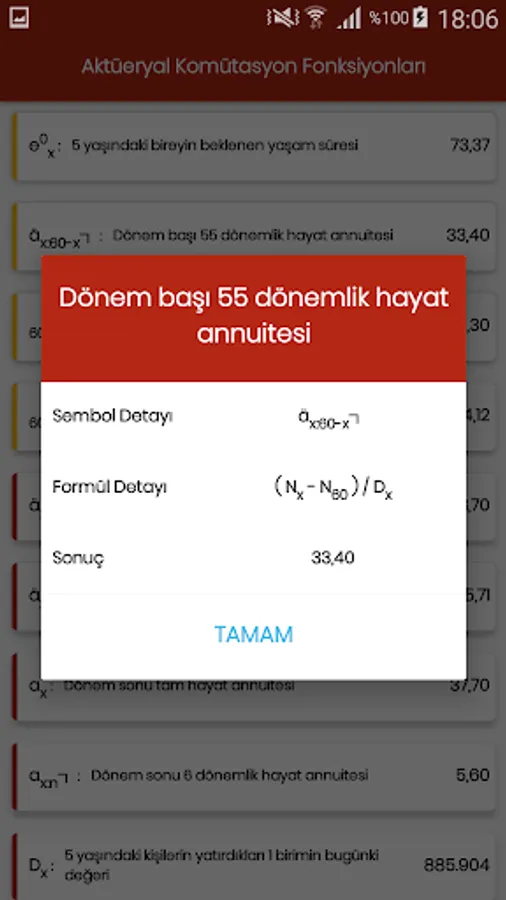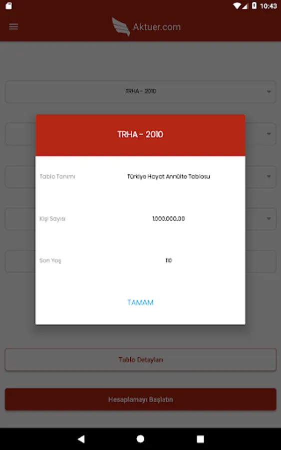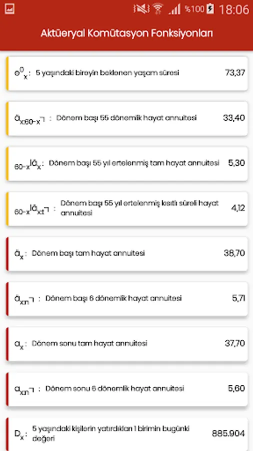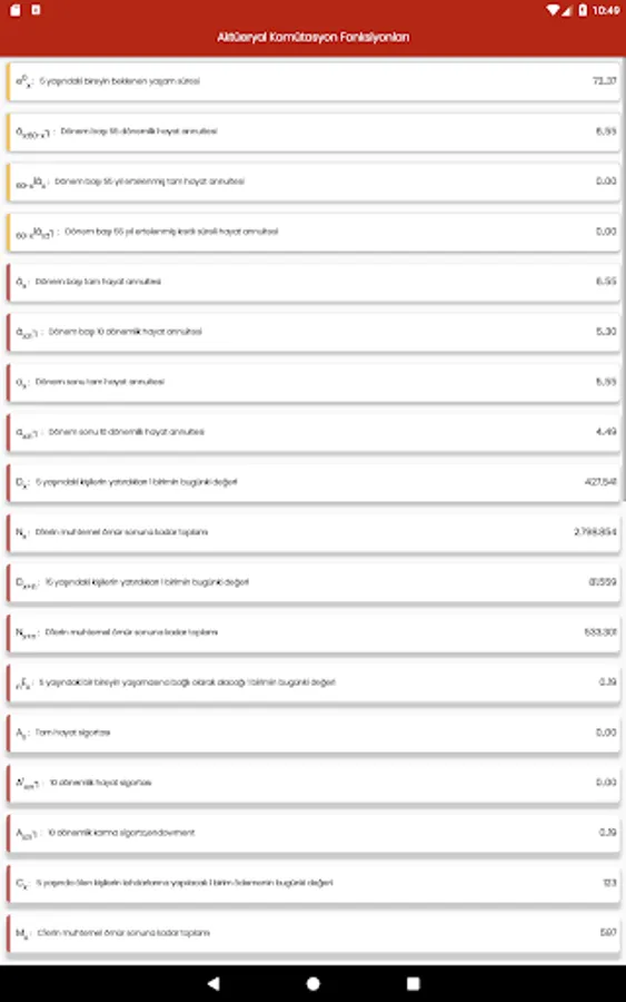 Immediate access to the results of different mortality tables and Actuarial Commutation Functions without internet or any additional calculations