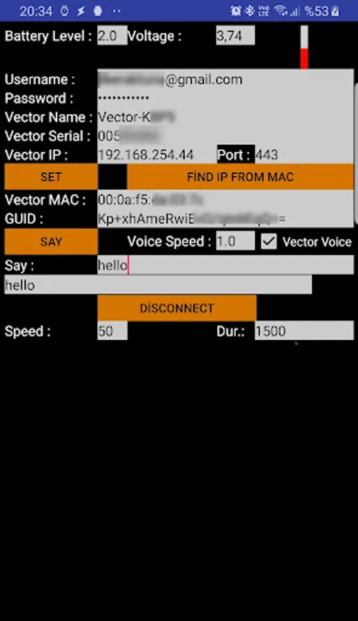 You have to enter your username (email) and password for the Anki account and then enter the local IP address of Vector.