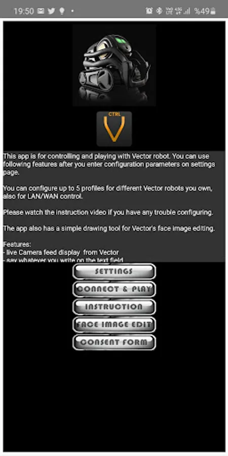 This is the paid , Ads Free Version of Vector CTRL, a control app for Anki Vector which also lets you use it as a moving security camera.