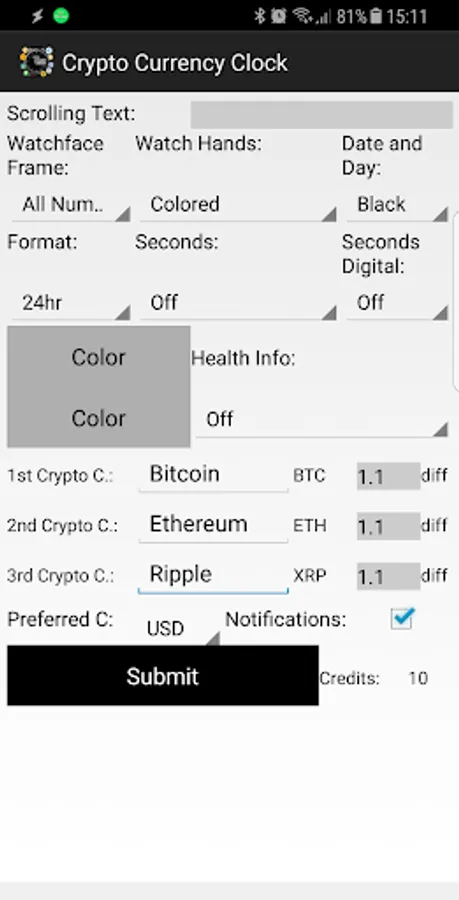 This is the companion app for Crypto Currency Clock on Samsung Gear S2/S3. It is for settings of the watchface/application and for notification management.