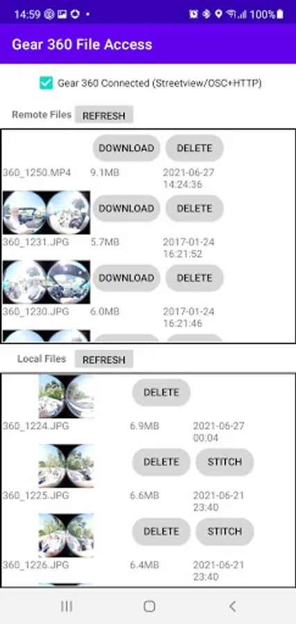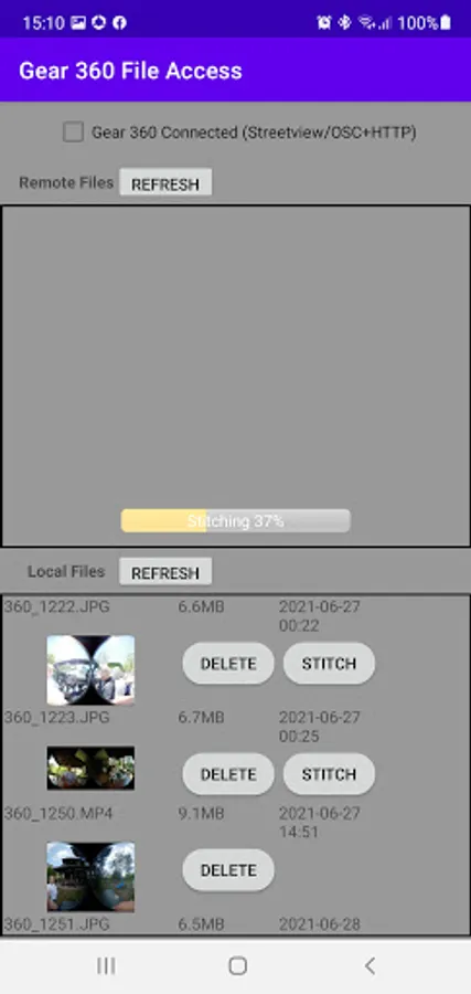 This application also stitches the images and videos to photosphere (360 panorama) format on user request (STITCH function)