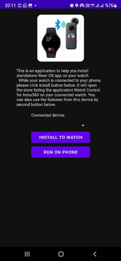 This application connects to your Insta 360 camera through bluetooth connection and lets you capture photos or videos using your Wear OS watch as a remote control.