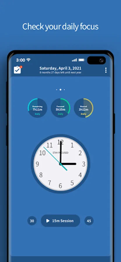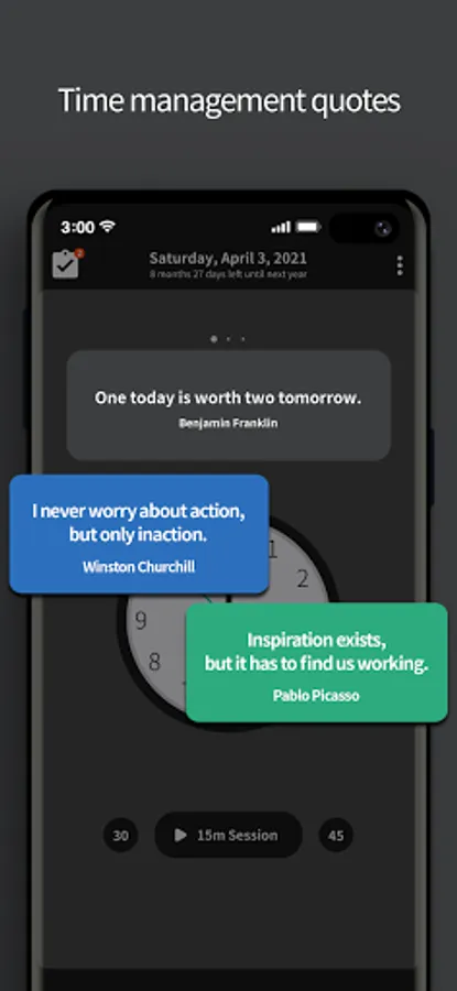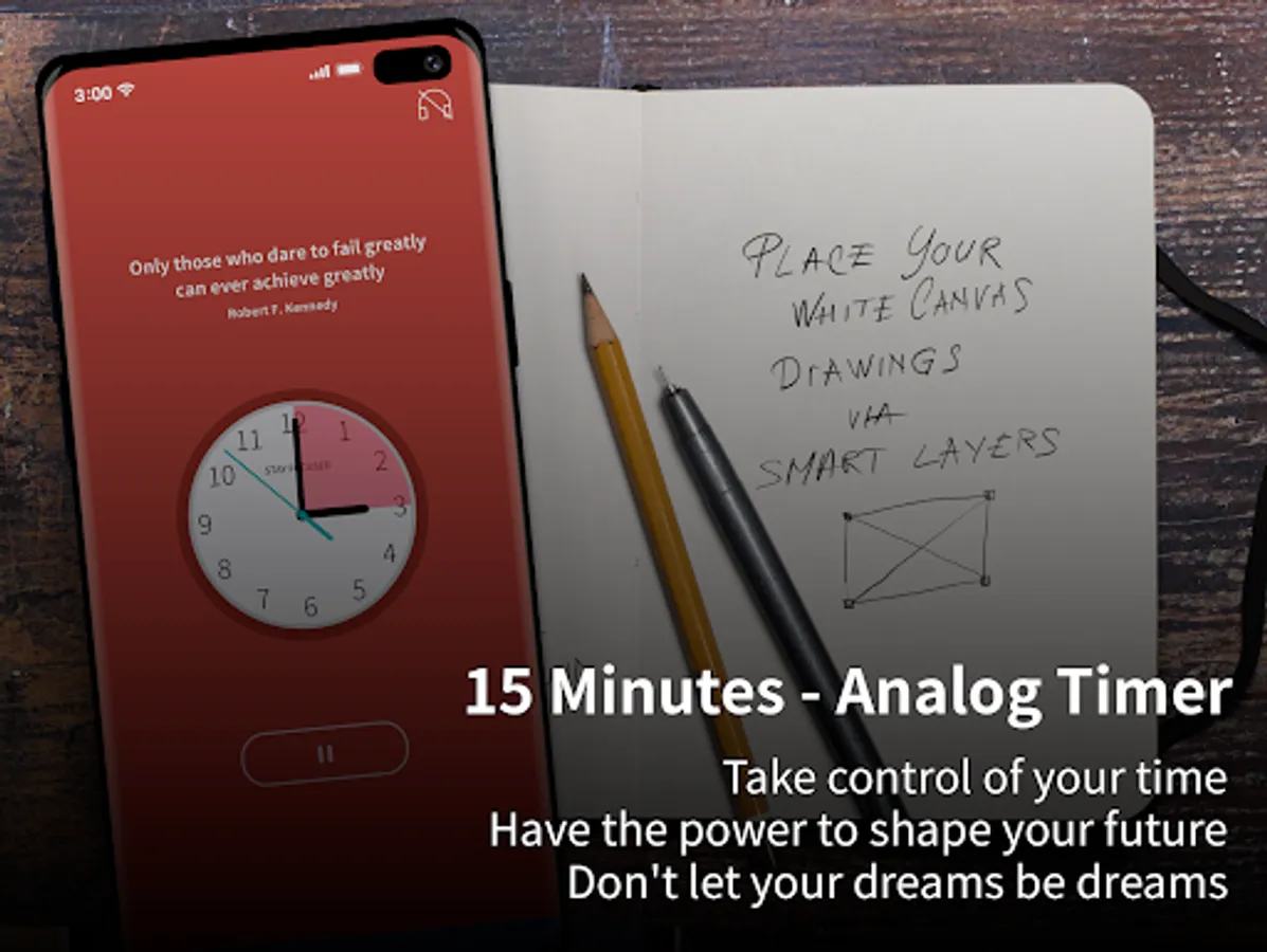 15 minutes is a cognitive science-based app that will motivate you to stay focused and get things done. The analog clock gives you better visual awareness of time than a digital clock. Feel and be aware of every minute passing by, and make use of it. Life is shorter than we think.