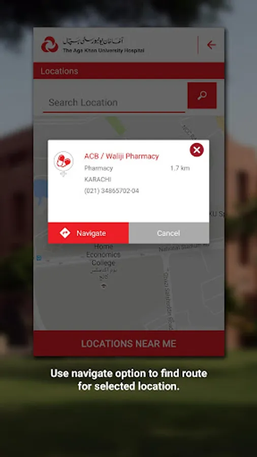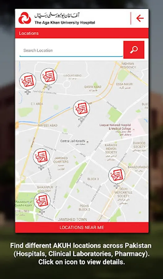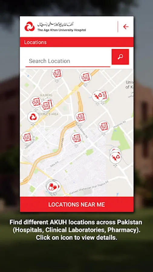- Find and navigate to AKUH locations (Hospitals, Medical Centers, Laboratories, and Pharmacy) in Pakistan
