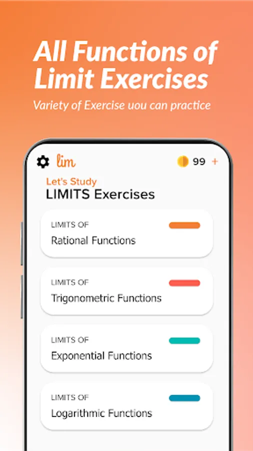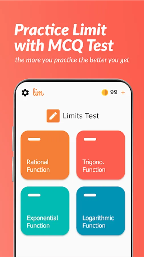 LIM is a mobile application created by AKUM app development group. It contains a variety of limit exercises collected from many resources across the internet and from books. Lim App is the best Limit practice exercise app in the store. Please stay tuned for more educational apps with us.