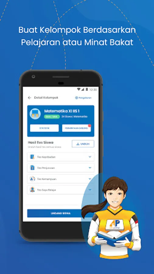 Group your students according to their needs or the results of your student's talent interests. Aku Pintar Guru helps you plan study sessions, view attendance, make announcements, and create assignments for students